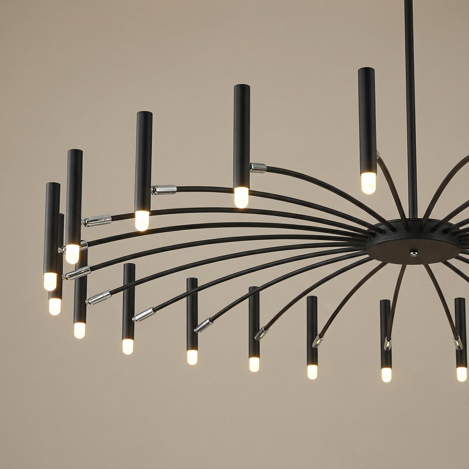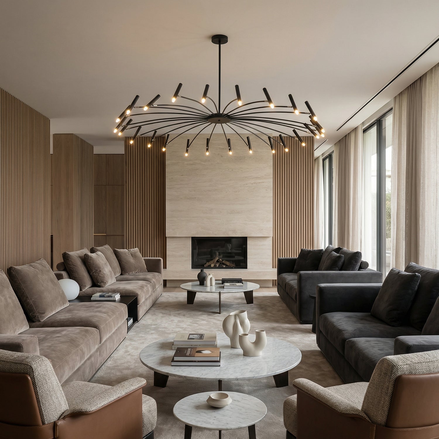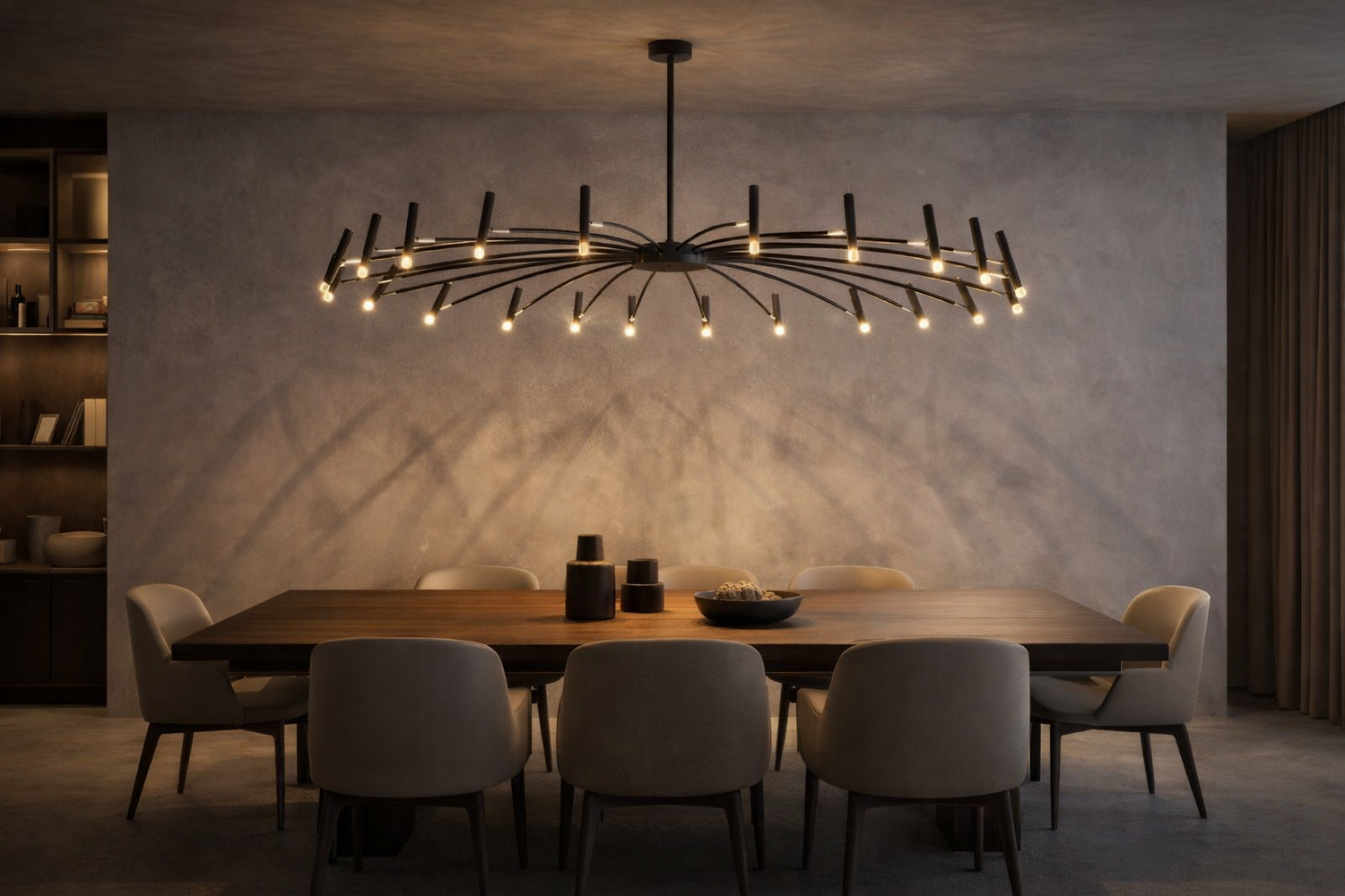 Ja, Taklampa Venice är designad för större utrymmen och passar utmärkt över långa matbord, i vardagsrum och i öppna ytor där en stor taklampa behövs som både belysning och designstatement.